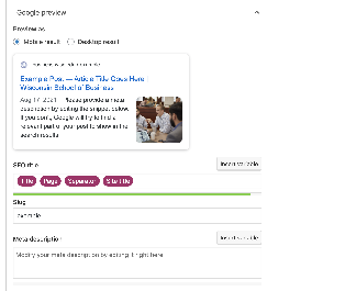 - SEO information is populated for you based on the article title and an excerpt from the beginning of the article.