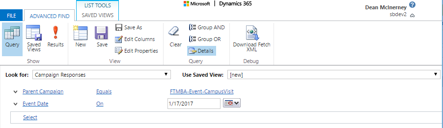 - Create an advanced find in Campaign Responses for the specific event registrations. Select Results.