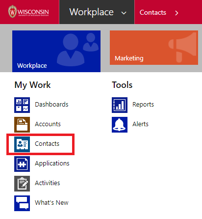 Search for the contact you are looking for by using Last Name, First Name, as well as the asterisk wildcard. If the contact does not yet exist, select the new button at the top left of the screen.
