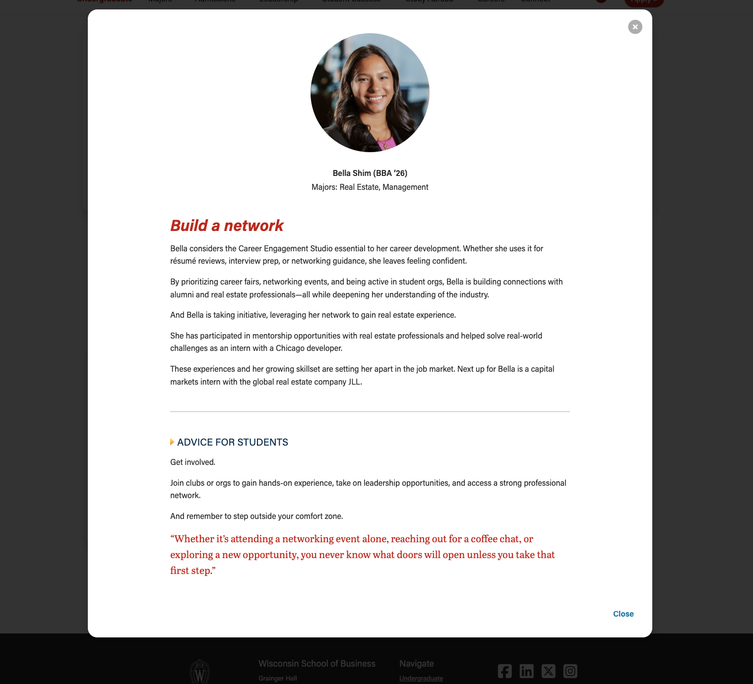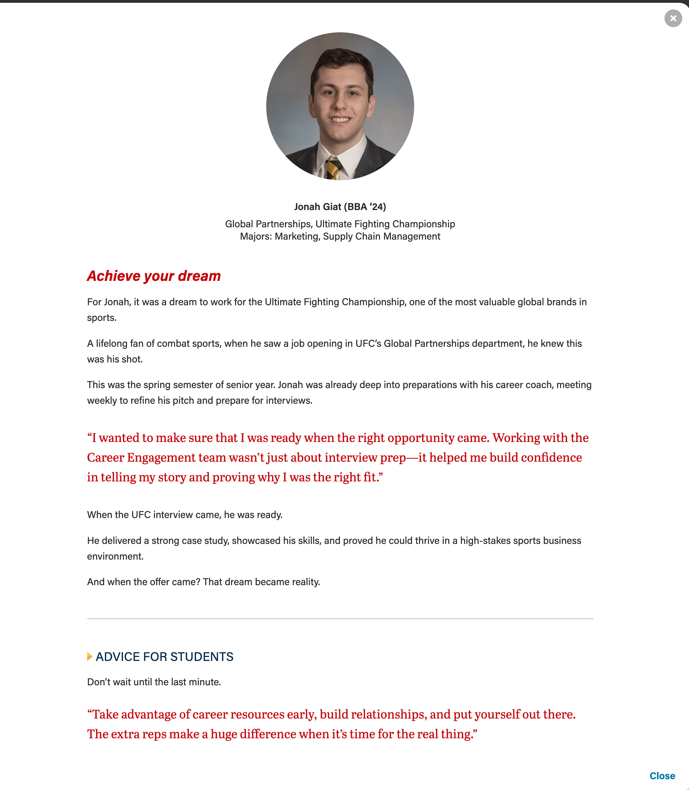 - Storytelling; sharing a person's profile or career background (examples: BBA Careers, Companies and Recruiters)