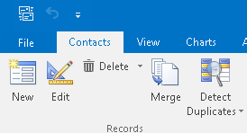 To edit a contact, select the Edit button on the top left of the ribbon. This will open a web wrapper to the contact within LRM. Similarly, select the New button to add a new contact.