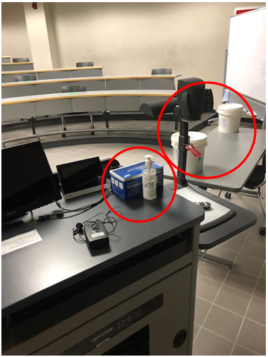 The intent is all Faculty that teach in a given class will share these PPE items and it will eliminate the need for our Faculty to carry PPE between rooms. Both items are on the podium in each space. If you notice supply is getting low or missing, please notify the Facilities and Events Department.