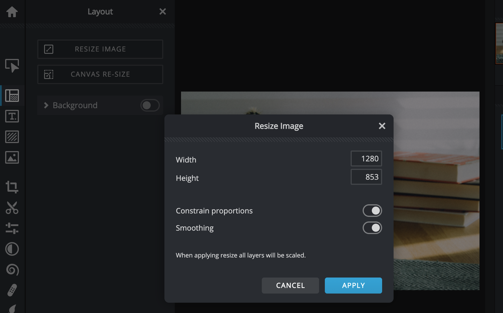 - Select "Resize Image" to view the dimensions.
