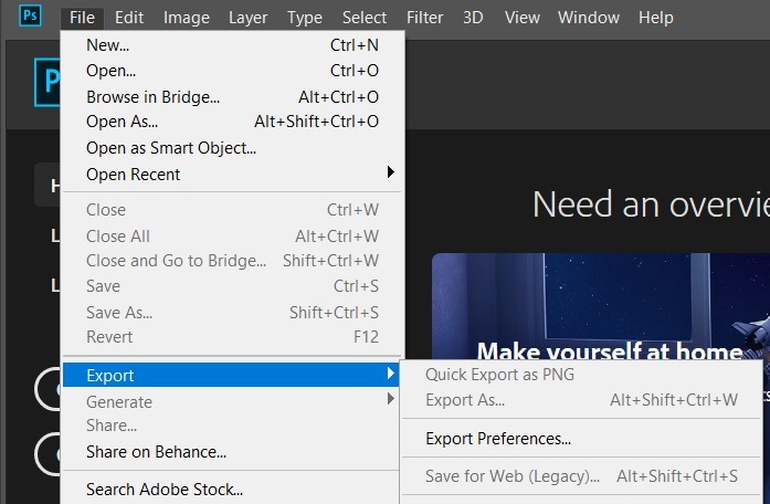 Then, to save as sRGB, navigate to File > Export > Save for Web.