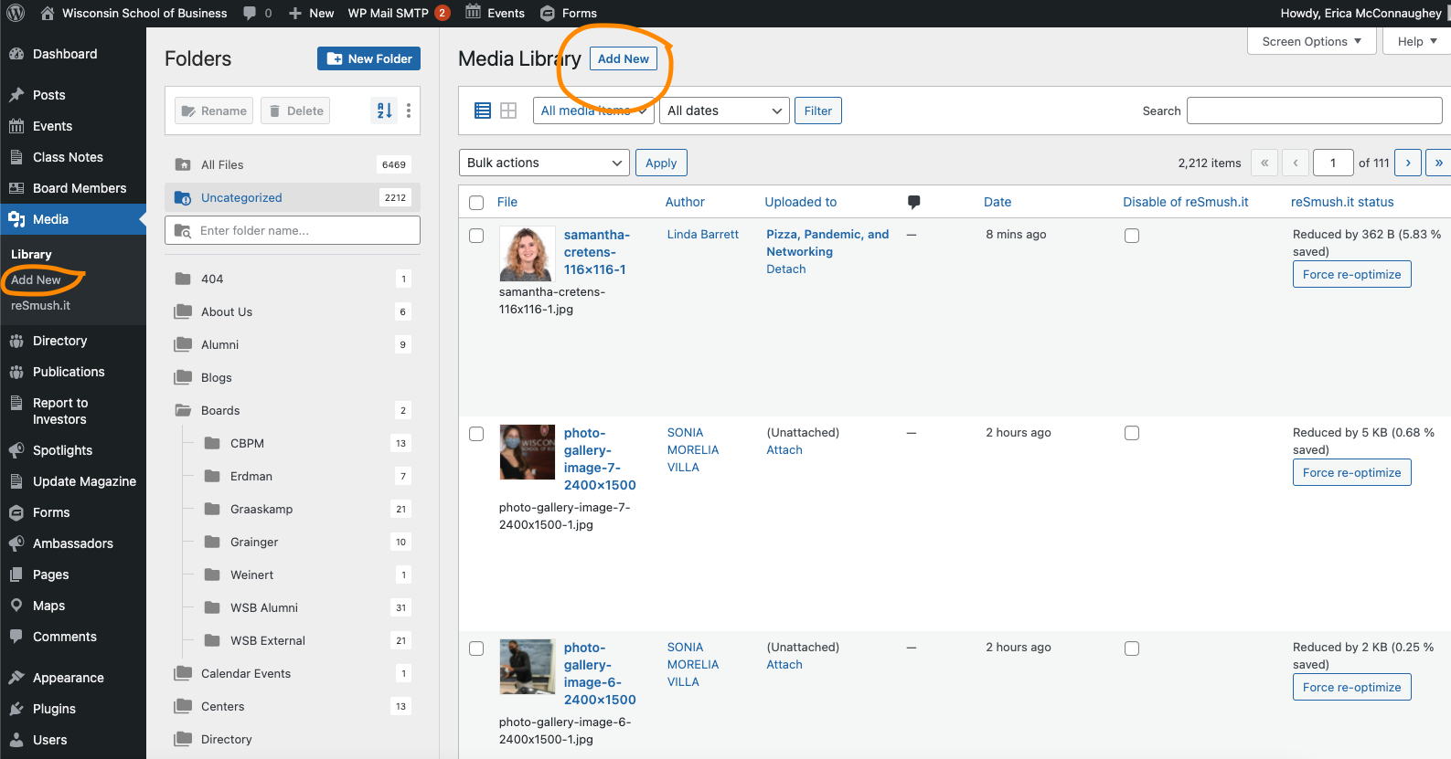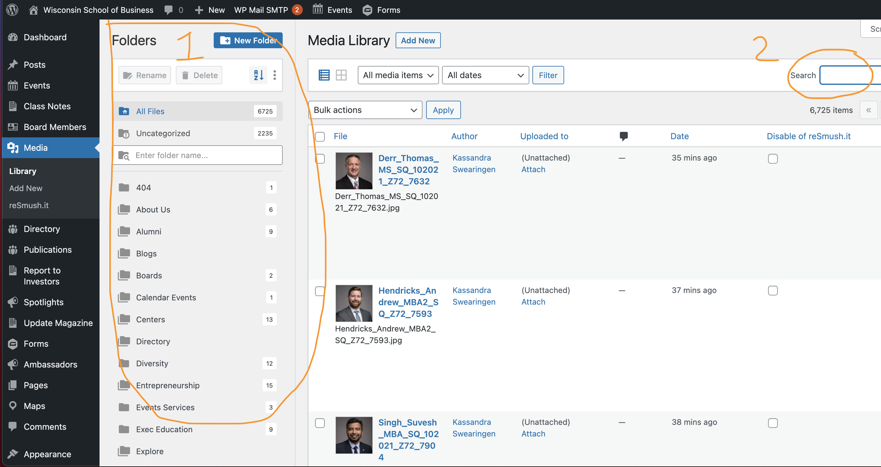 Note: You must complete WSB WordPress (WP) training before you will be granted access to the WP media library.