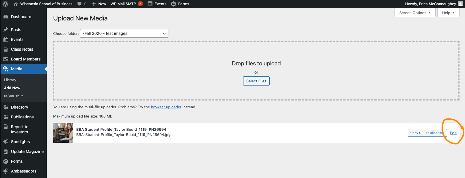 - Wait for your image(s) to upload, then click Edit next to each. (Tip: When uploading multiple images, right click on Edit and open the link in a new browser tab so you don't lose track of the images you need to edit.)